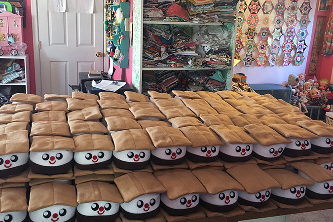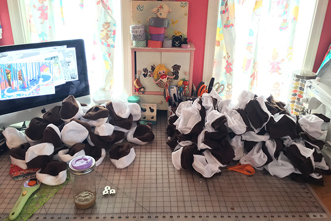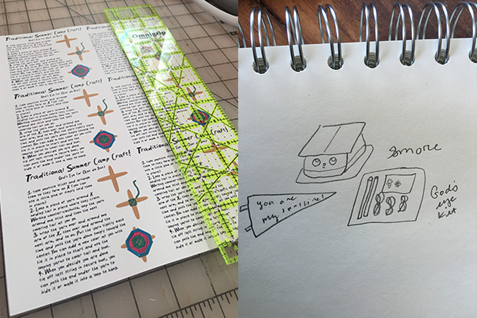 August POM’s club boxes were sort of a last hoorah of Summer, Summer camp themed. I wanted everyone to get excited about the theme even before they opened the boxes so I created tiny pennants that were tied to string. The plush was of course a s’more, but the box also included a little kit to make a “god’s eye” (a classic Summer camp craft), fire balls (which always remind me of the kind of candy you could find at a camp store, all those penny candies!) a pennant (for decorating your bunk) and a welcome camper letter explaining everything in the boxes. I had lots of fun putting these together, and hope they gave a little Summer camp nostalgia to my subscribers.